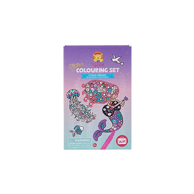- GLITTER OCEAN COLOURING SET - Little artists can colour in mermaids, jellyfish, seahorses & more with this super sparkly glitter colouring set. Has non-toxic materials.