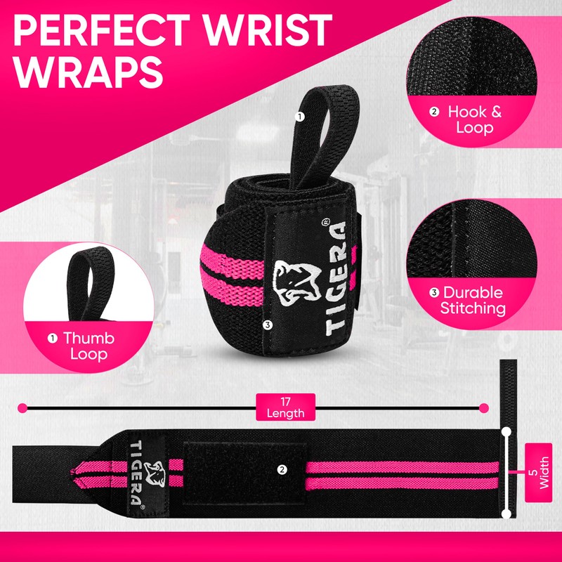 • SIZED 18" LIFTING WRIST WRAPS - TIGERA wrist wraps are true to length. This means you get the highest level of firmness and support compared to shorter bandages. However, the length is not too long and is approved in competition if you are looking for the best wrist wraps for squats, bench press, powerlifting, push-ups, planks, burpees & strength training and deadlifts.