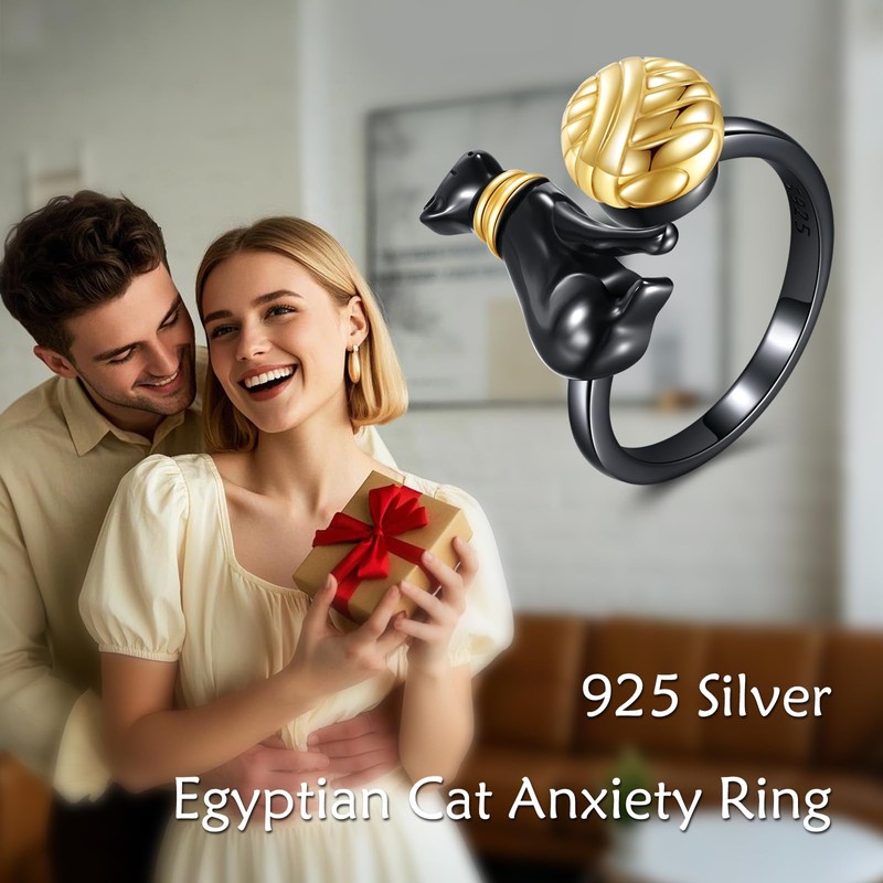 - 1)Unique Design:The design inspiration for this anxiety ring comes from the scene of a kitten playing with a ball of yarn. The cat was designed as a special Egyptian cat, with a black and gold color scheme that exudes a sense of mystery.