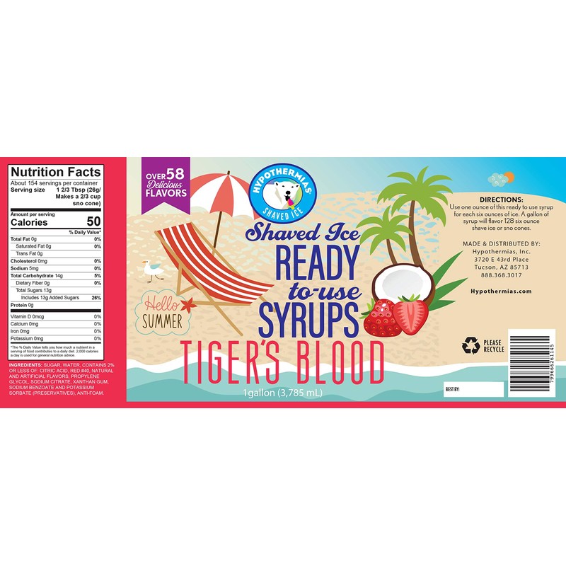 Tigers Blood Ready to Use Shaved Ice or Snow Cone Syrup Gallon (128 Fl. Oz)