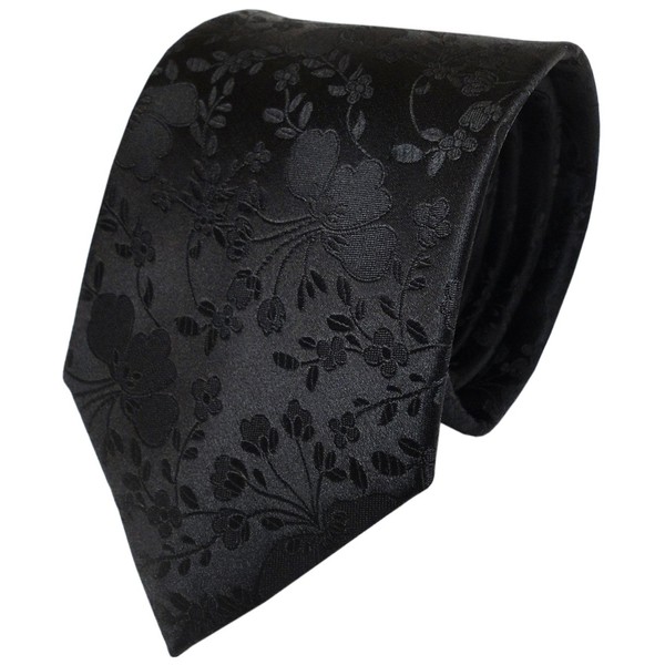 TigerTie Designer Silk Tie in Black with Floral Pattern - Tie 100% Silk, black