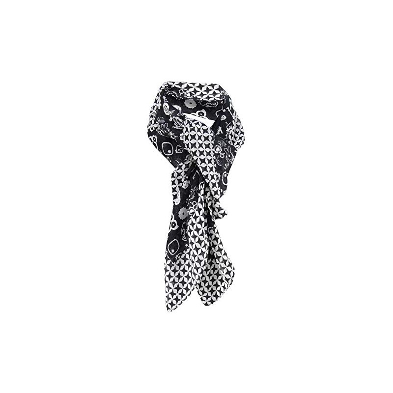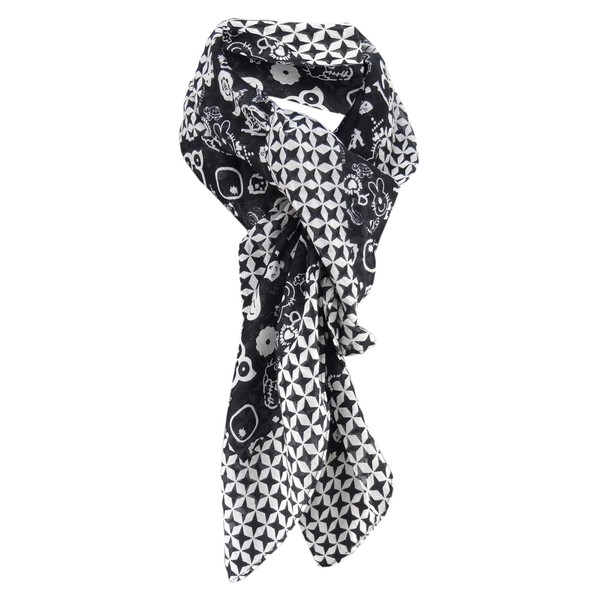 TigerTie Neckerchief Grey/Black with Many Small Designs and Stars Size 100 x 100 cm, grey black