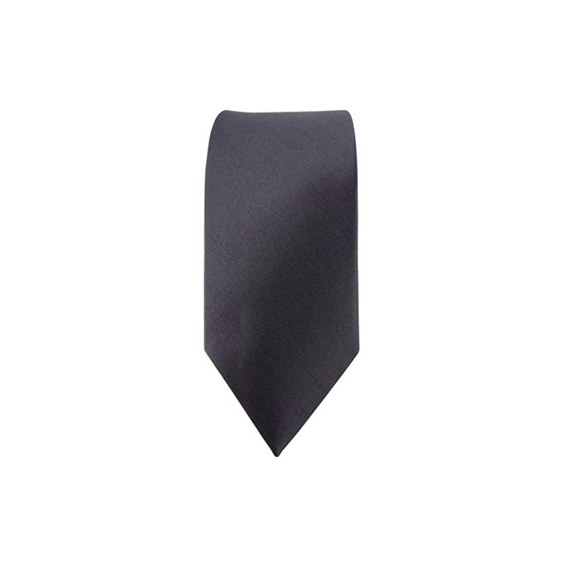 TigerTie Slim Satin Silk Tie in Various Colours Plain Tie 100% Silk Width 6 cm, charcoal grey