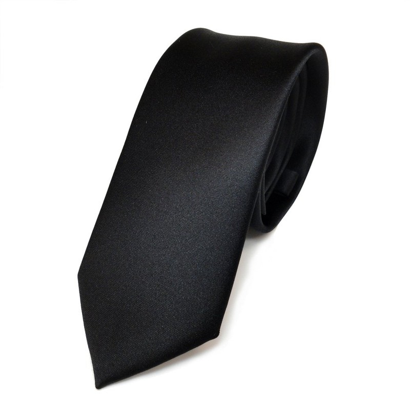 TigerTie Slim Satin Tie in Solid Colour in Various Colours - Black