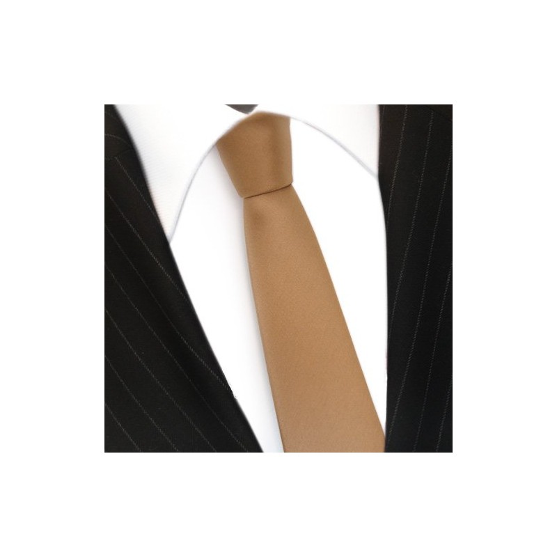 TigerTie Slim Satin Tie in Solid Colour in Various Colours - Gold