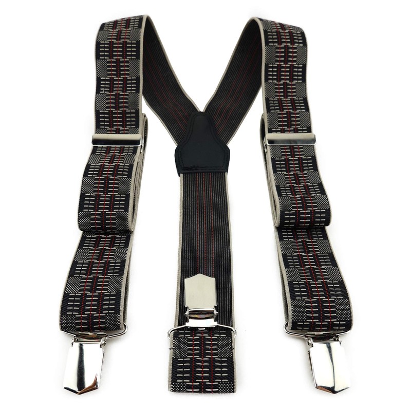 TigerTie Unisex Y-shaped braces with 3 extra strong clips, patterned, high-quality workmanship, width 35 mm, Red, silver, black