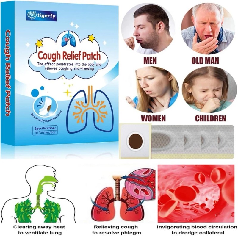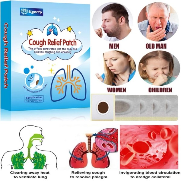 tigerty 10PCS Cough Relief Patch Natural Herbal Suppressant Plaster for Sore Throat Care