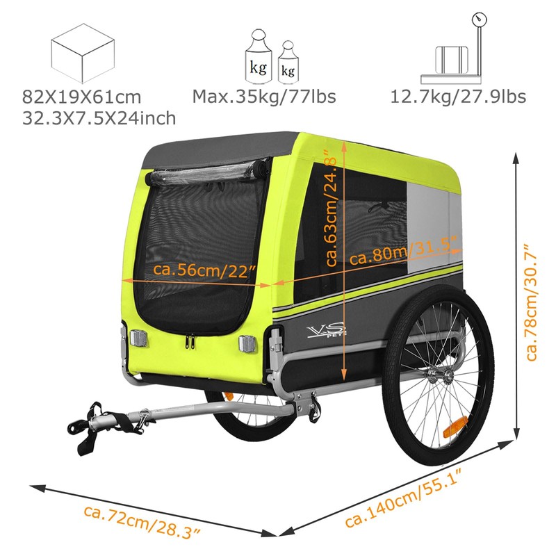 Tiggo Veelar Sports Large Pet Bike Trailer for Medium or Large Sized Dog or Multiple Small Dogs, Foldding Frame Bicycle Carrier Up to 78 LBS Parking Brakes,Low Center of Gravity (Large, Green)