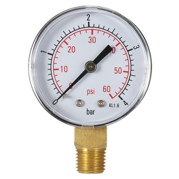 Tignapoo 50mm 0~60psi 0~4bar Pool Filter Water Pressure Dial Hydraulic Pressure Gauge Meter Manometer 1/4" NPT Thread