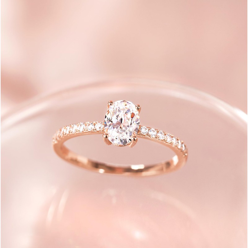 - Delicate Design: The centerpiece of this ring is a 1.5-carat oval cubic zirconia ring. And an exquisite design with 9 pcs dazzling small cz encircling half of the center stone, amplifying its alluring beauty