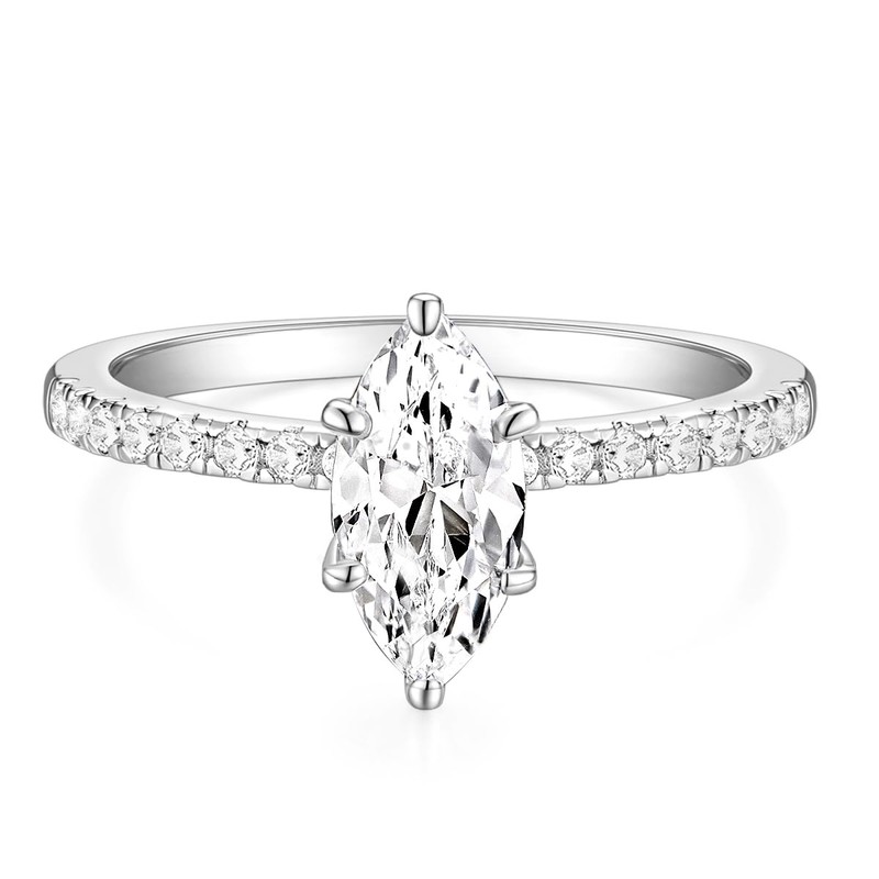 - Crafted with precision, the ring boasts a 5A marquise cut 2ct 6x12mm center stone, which is held in place by a classic 4-prong set. The ring also features a total of 16pcs 1.5mm small round cubic zirconia pave inlay
