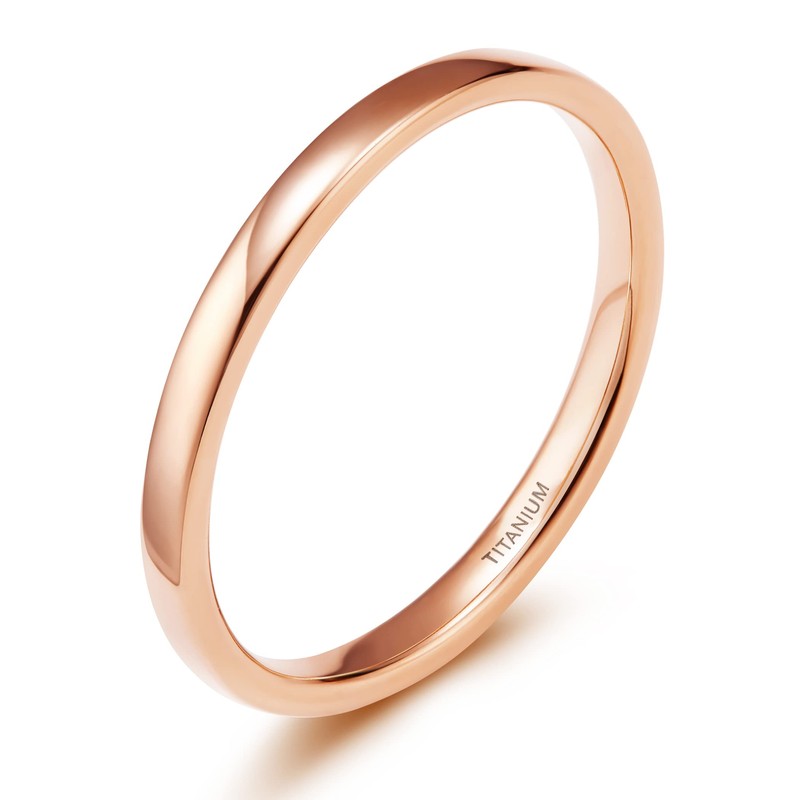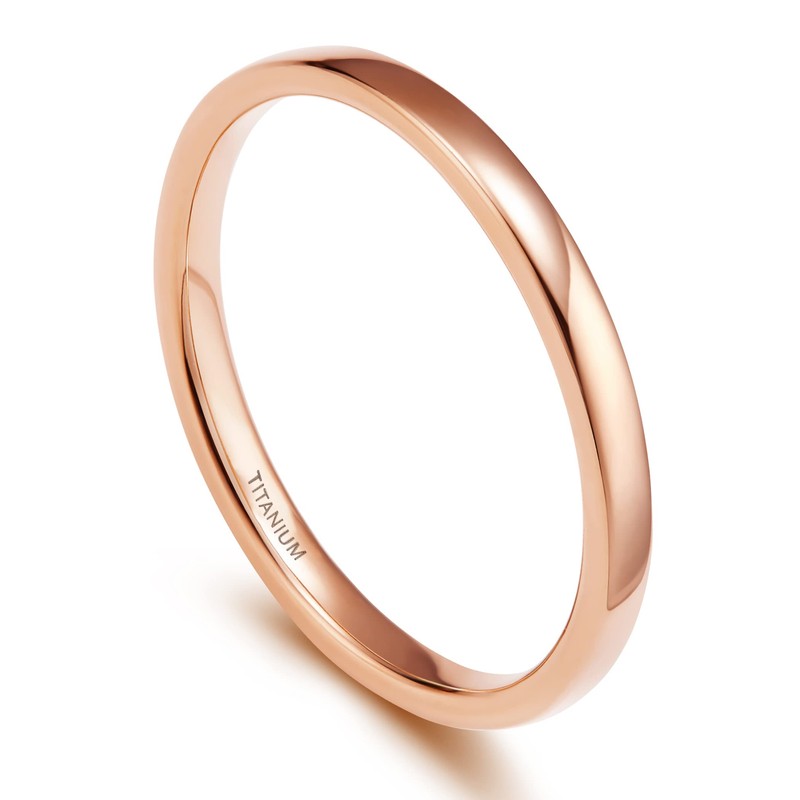 TIGRADE 2mm 4mm Rose Gold Titanium Plain Dome High Polished Wedding Band Ring Comfort Fit Size 3.5-12.5 (2mm, 5)