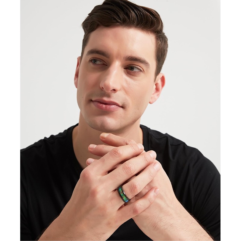 TIGRADE 8MM Abalone Shell Titanium Rings Wedding Bands Comfort Fit Size 6-14, Black, Size 8