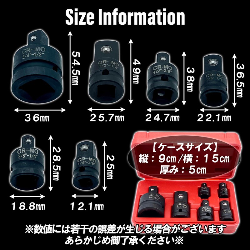 - Easy to operate: Just attach it to an air impact wrench or electric impact wrench to easily convert the size of the insertion angle