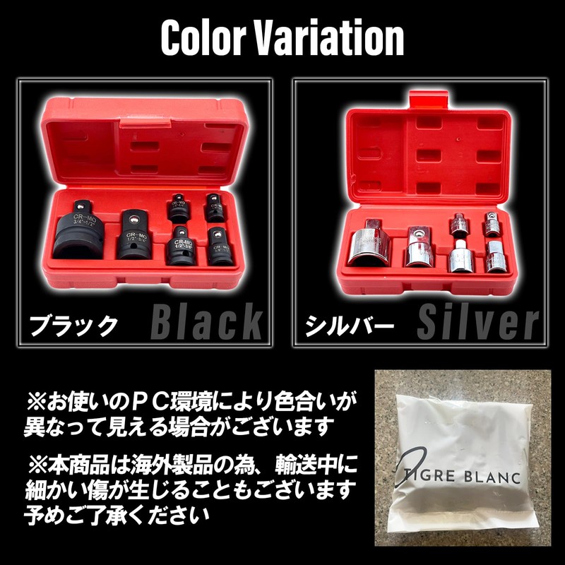 TIGRE BLANC Socket Conversion Adapter, Insertion Angle, Impact Wrench, Compatible with Chrome Molybdenum, 1/4, 3/8, 1/2, 3/4, 6 Pieces, Set of 6, Black, Black