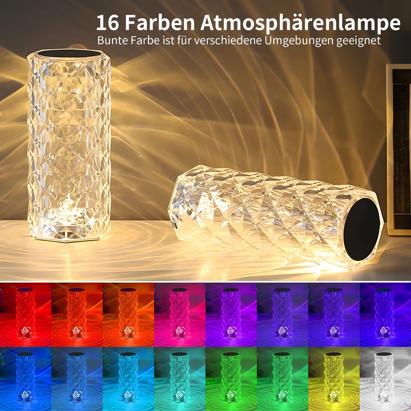 Tihokile Imitation Crystal Table Lamp, 1800 mAh Crystal Lamp with Remote Control, Acrylic Diamond Bedside Lamp, Touch Dimmable for Decoration, Bedroom, Date, Dinner, 16 Colours, 4 Modes, Easter