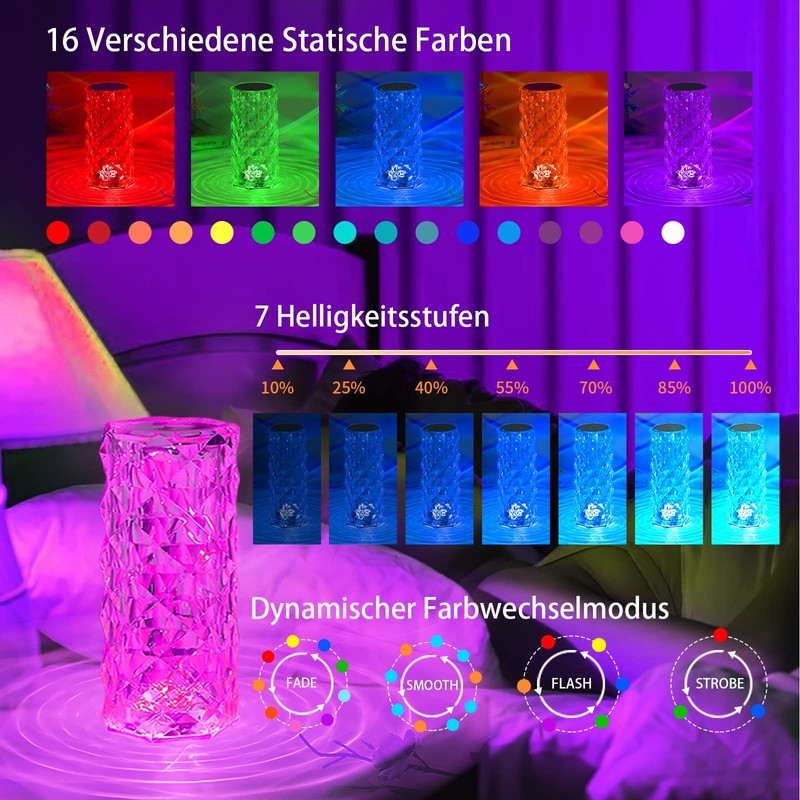 - Stylish Appearance Seamless fusion of the timeless beauty of roses with the complexity of modern technology, it contains 16 light colors, 4 dynamic modes, 7 brightness levels. Display rose pattern under lights that shine like real crystals, you can choose different light colours and brightness according to your mood, creating a stunning visual experience.
