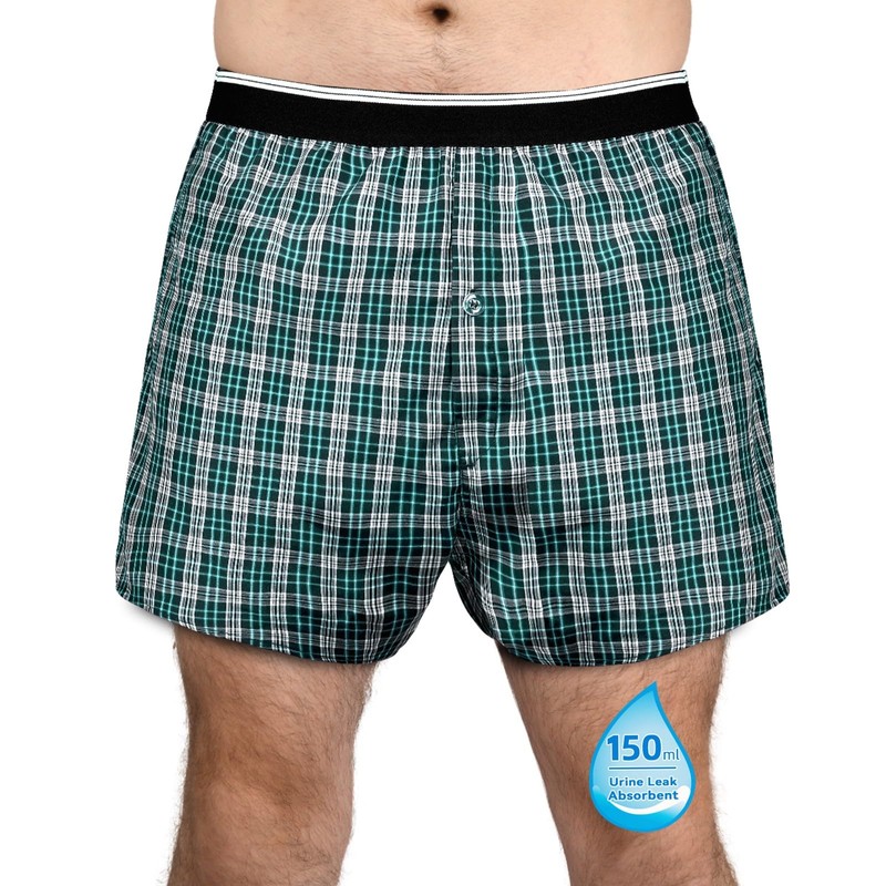 TIICHOO TIICHOO Incontinence Underwear for Men Moderate Absorbency Leak Proof Boxer Shorts with Opening Fly Checkered 1 Pack(4X-Large, 1 Green)