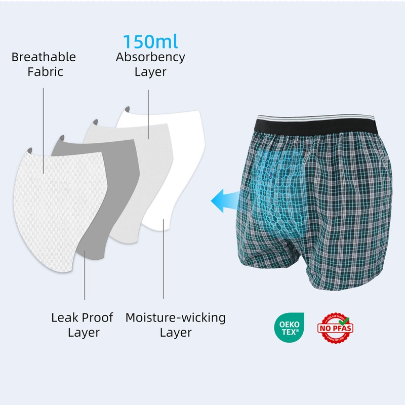 - Special Design: These men's incontinence boxers features a unique hanging separating structure of absorbent layers that extend for a larger guard lining. Unlike built-in briefs, this structure reduces friction and minimizes skin irritation, while also improving airflow for better hygiene. The protective underwear is reusable and machine washable for repeated wash