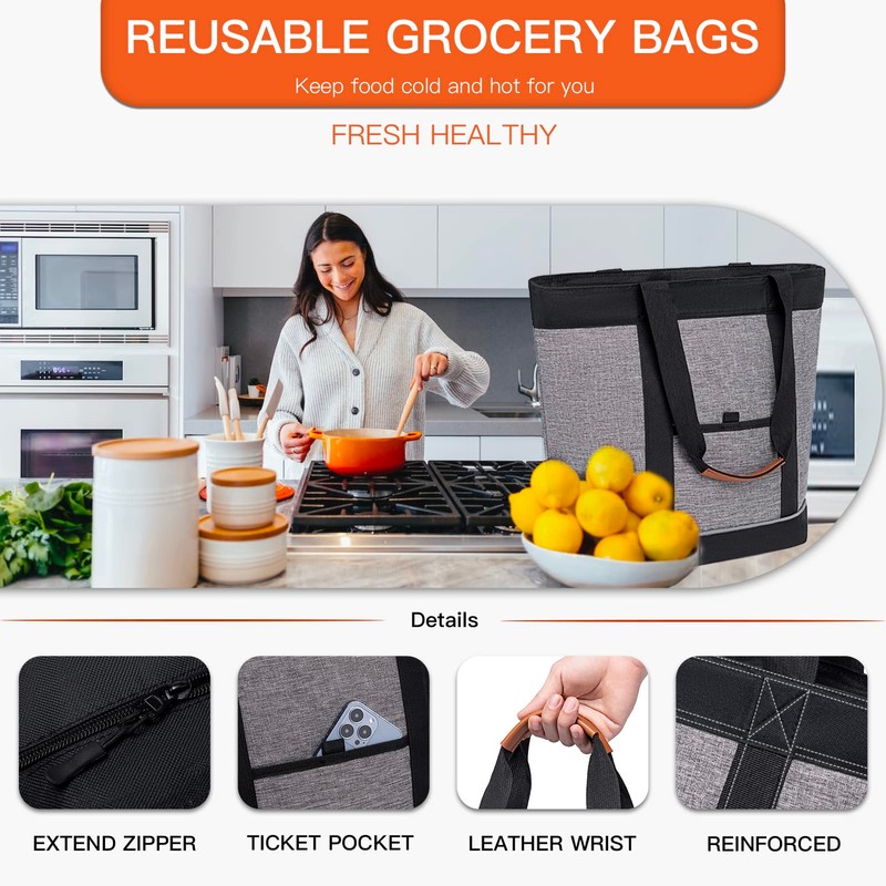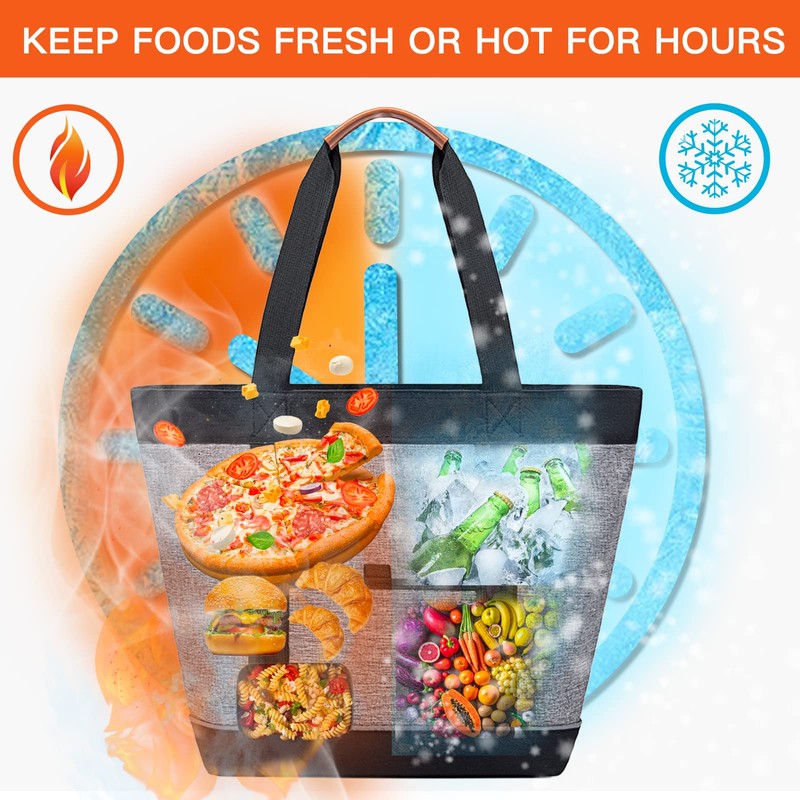 TIIOCTI Insulated Cooler Bag - Large Reusable Grocery Tote for Women, Perfect for Transporting Hot or Cold Food, Suitable for Delivery, Travel, and Picnic