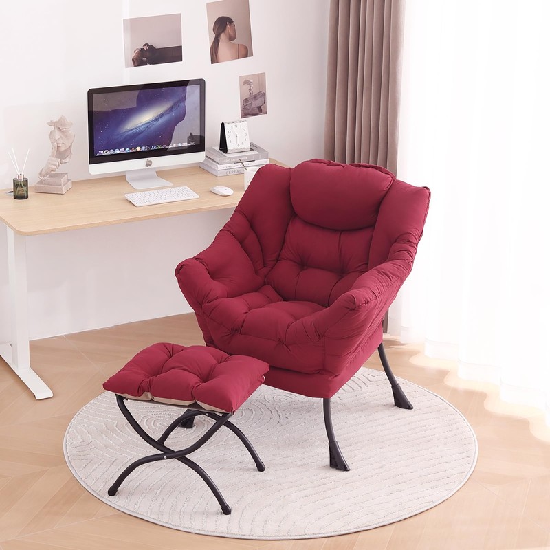 Tiita Lazy Chair with Ottoman, Modern Large Accent Lounge Armchair, Comfy Leisure Sofa Reading Chair with Footrest for Bedroom, Living Room, Dorm Rooms, Garden and Courtyard, Wine red