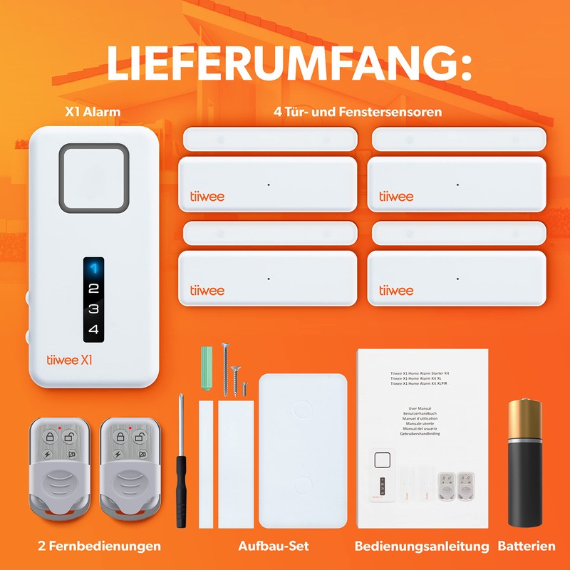 - COMPLETE SET: This kit includes a powerful X1 siren as well as four door and window sensors and two remote controls, all pre-configured and ready to use. In addition, the necessary mounting material for installation is provided.