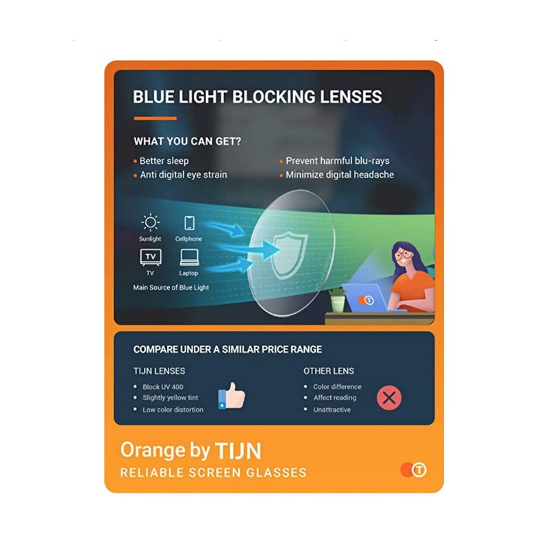 Tijn Orange By TIJN RELIABLE SCREEN GLASSES BLUE LIGHT BLOCKING GLASSES , Blue, New