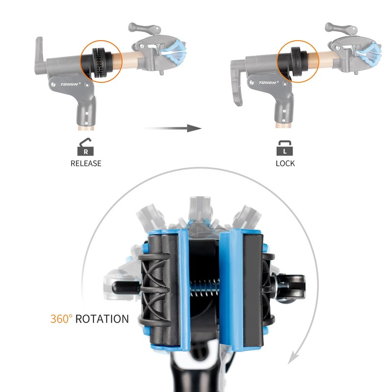 - ROTATABLE HEAD: The holding head clamp is 360-degree rotatable by turning the quick-release knob. The teeth and clamp are both well-made and heavy-duty. This bike stand could hold bikes up to 30Kg or 65LB at any angle after you well open the stand.