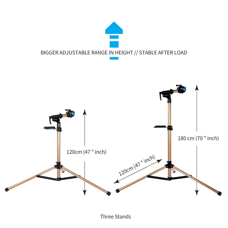 - WORRY-FREE PURCHASE:Our bike stand has attached additinal replacements of quick relaease and plactic bush for longer life-spin and accidental problems happen once use.This folding bicycle stand is a reliable work stand for both traveling to events as well as performing home repairs. bike repair stand enjoys a reliable after-sale service. If you have any questions, just feel free to contact us.