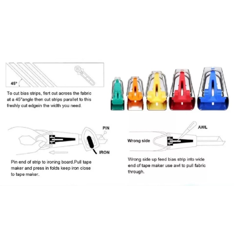 TIKA 4 Pcs Sewing Bias Binding Tape Makers Kits Clips Awl Quilter's Quilting ...
