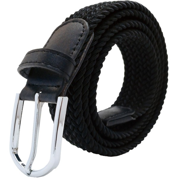TIKAKU Men's Mesh Belt, Stretchable, Braid, Elastic Belt, Casual, Large Size, Total Length: 45.3 inches (115 cm), Black