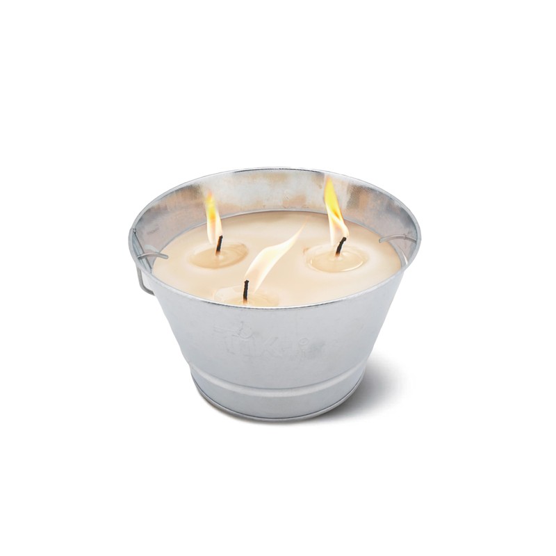 TIKI Citronella Candle 28-Ounce – Triple Wick Metal Bucket with Lid (Silver) – Long-Lasting Outdoor Candle for Patio, Deck, Garden, Backyard & Camping
