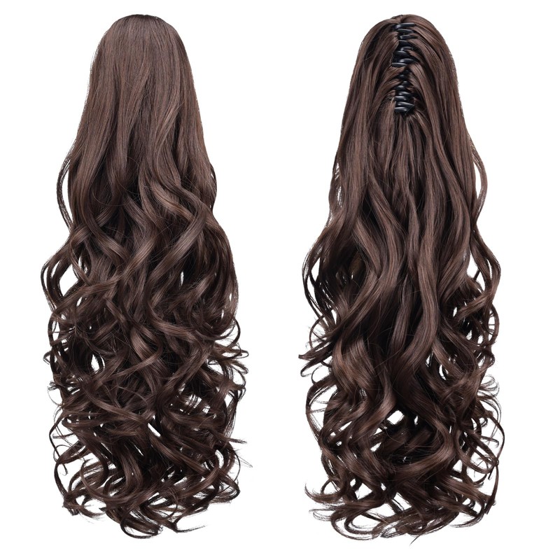 Tiklans Extensión De Cola De Caballo Marrón, Extensión De Cola De Caballo Con Clip De 22" Para Mujeres, Extensión De Cabello De Cola De Caballo Larga, Fibra Sintética R Marrón Medio 24"