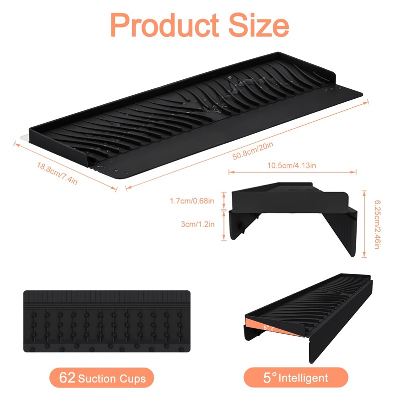 - Silicone Sink Splash Guard With Splash Proof Drain Ramp: There is a built-in 5° inclined edge that intelligently guides the overflow water back into the basin. This drainage design effectively reduces the difficulty of cleaning around the sink, while preventing kitchen/bathroom countertops and floors from getting messy.