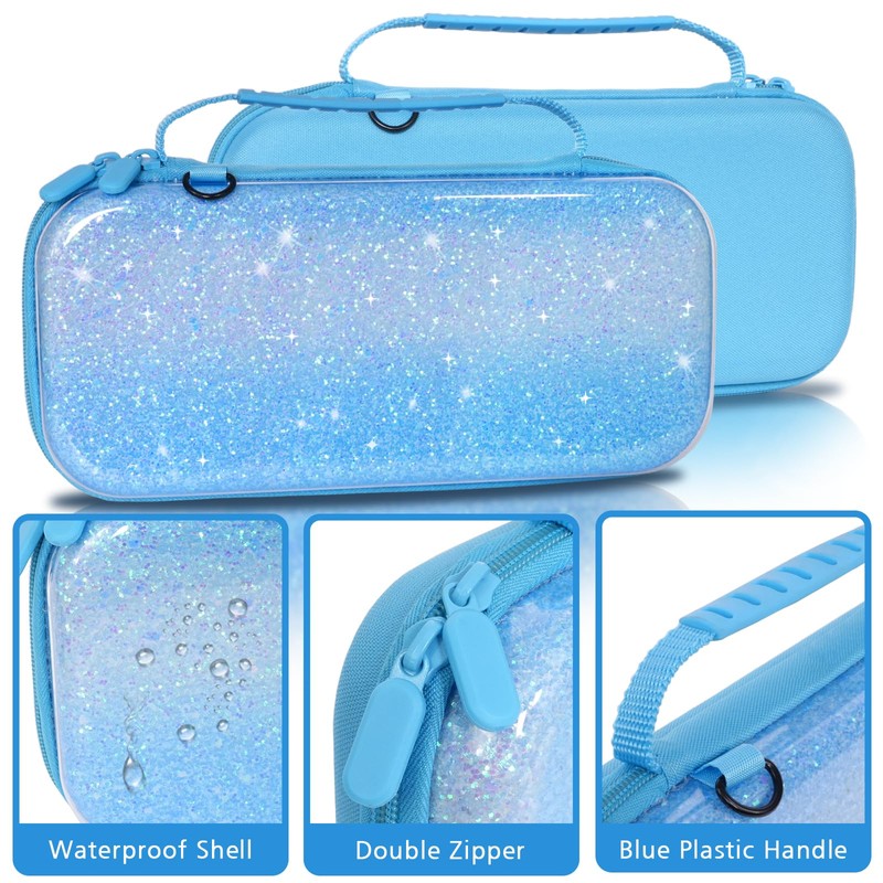 TIKOdirect Carrying Case for Switch2, Pretty Shockproof Portable Travel Bag with Glitter and Beautiful Patterns, Blue