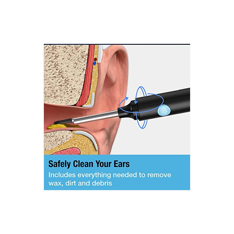 - Powerful 1080HD USB-C Ear Camera: Compatible with Android and iOS phones and tablets, our ear wax removal system includes a sleek ear scope with six LED lights for a clear view of the ear. Powered for up to 70 minutes per charge, our wireless camera is equipped with an ear scoop and includes soft silicone sleeves for added protection.
