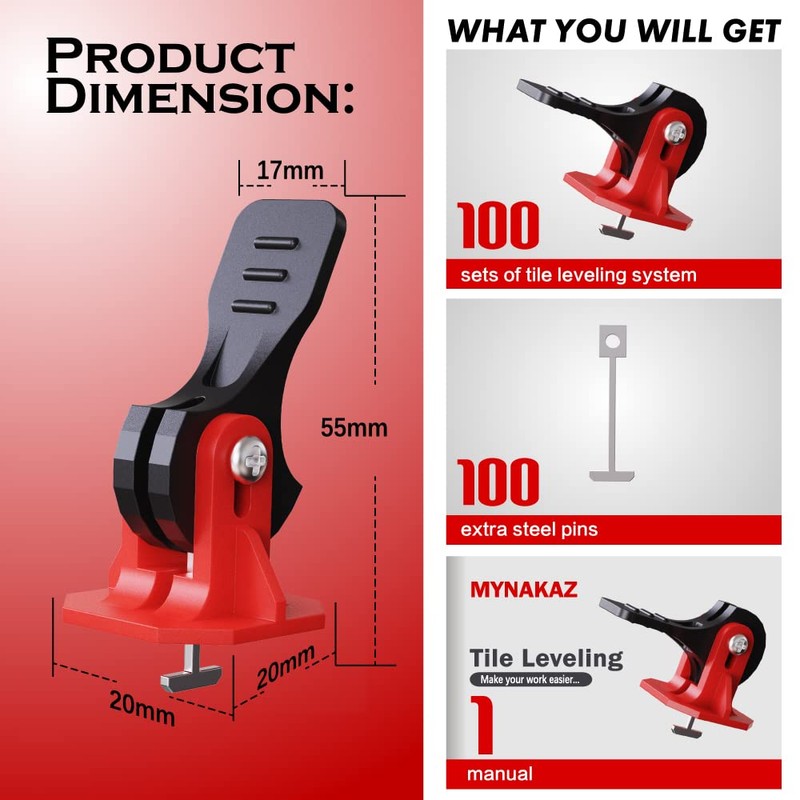 • EASIER & MORE EFFICIENT WORK - MYNAKAZ tile tool for leveling is much easier and faster to use and remove. Comparing to the traditional leveling system ( a lodge, a wedge and a plier ), our upgraded tile leveler is all-in-one leveling system. This tile leveling system is well thought-out, which makes large amount of leveling very easy to get the tiles lined up and pulled to level.