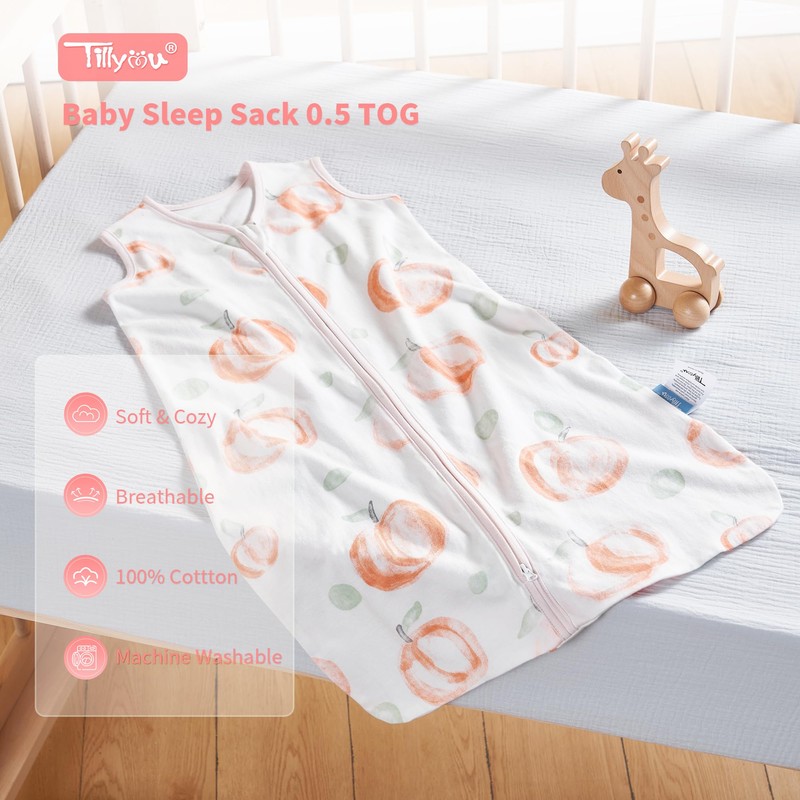 TILLYOU Baby Sleep Sack 6-12 Months 3 Pack, 0.5 Tog Soft Cotton Wearable Blanket for Kids with Double Zipper, Peach Dot