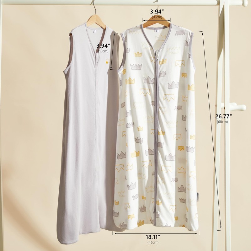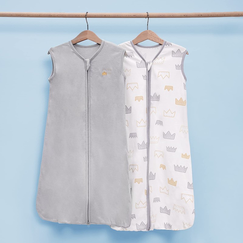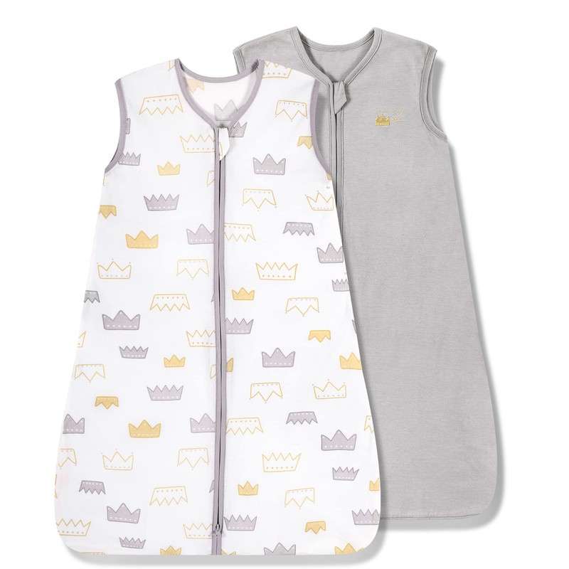 TILLYOU Small S Breathable Cotton Baby Wearable Blanket with 2-Way Zipper, Super Soft Lightweight 2-Pack Sleeveless Sleep Bag Sack for Boys, Fits Infants Newborns Age 0-6 Months, Gray Crown