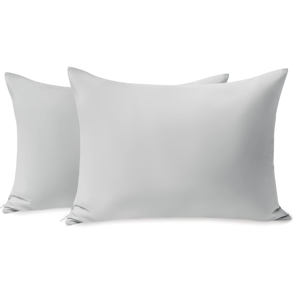 TILLYOU Toddler Pillowcase 2 Pack with Zipper,Silky Soft Microfiber 13" x 18" Kids Travel Pillow Cases,Gray