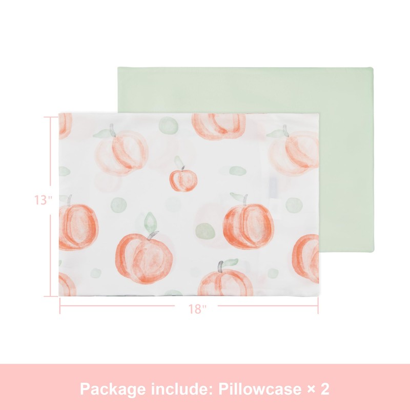 TILLYOU Toddler Pillowcases 13 x 18 Travel Pillow Case 2 Pack, Kids Pillowcases Machine Washable with Envelope Closure, Peach dot & Light Green