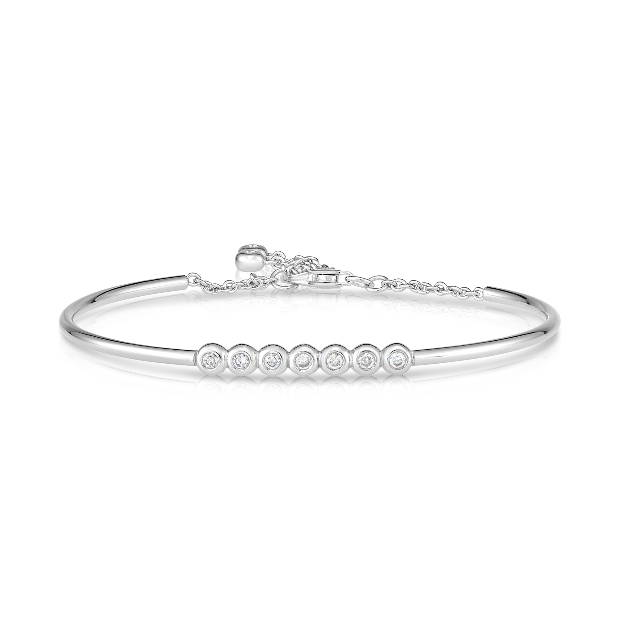 TILO Jewelry Classy Seven Stone Bezel Cuff Bracelet in Solid 925 Sterling Silver and Brilliant Cubic Zirconia Stones, Hand Polished Solid Sterling Silver Round Sven Stone Bezel Cuff Bracelet Classic Handmade Jewelry Women, Girls, Unisex