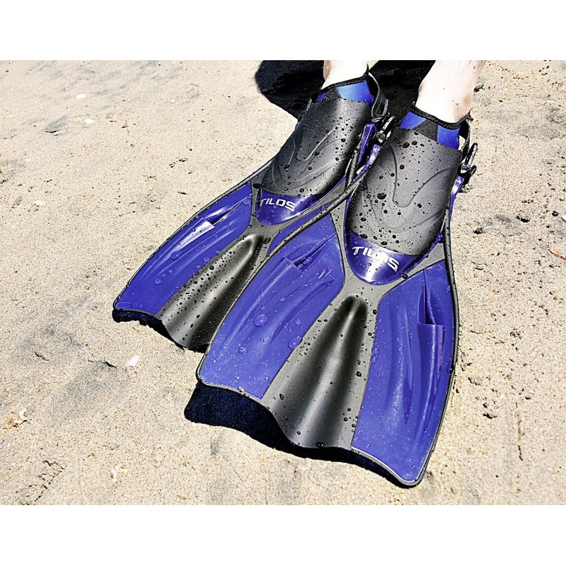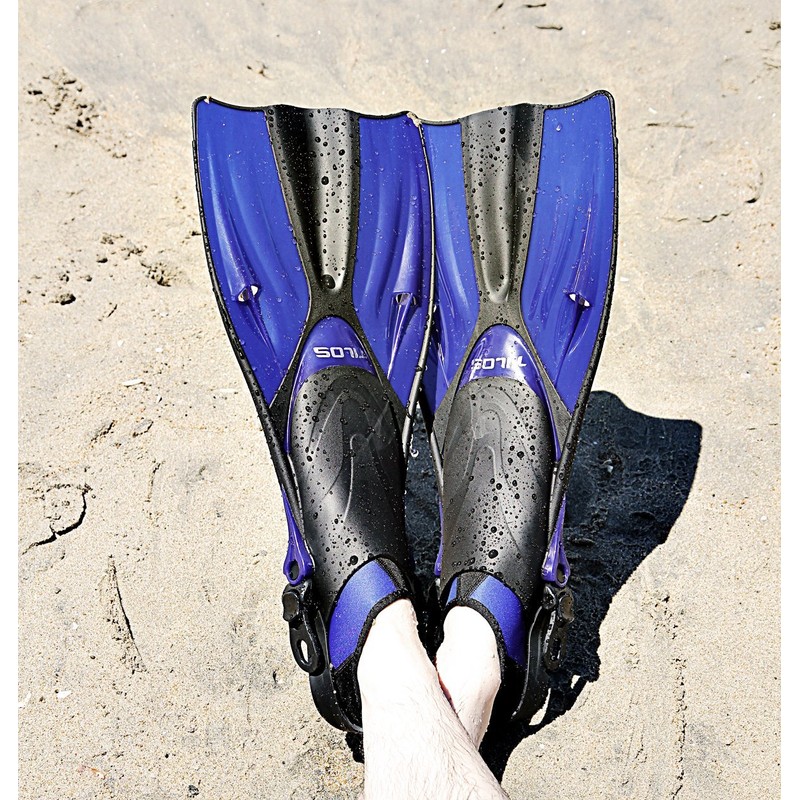Tilos Getaway Large Open Heel Snorkeling Fins - Travel-Friendly, Adjustable Flippers for Wide Feet (Blue, ML/XL (9-13))