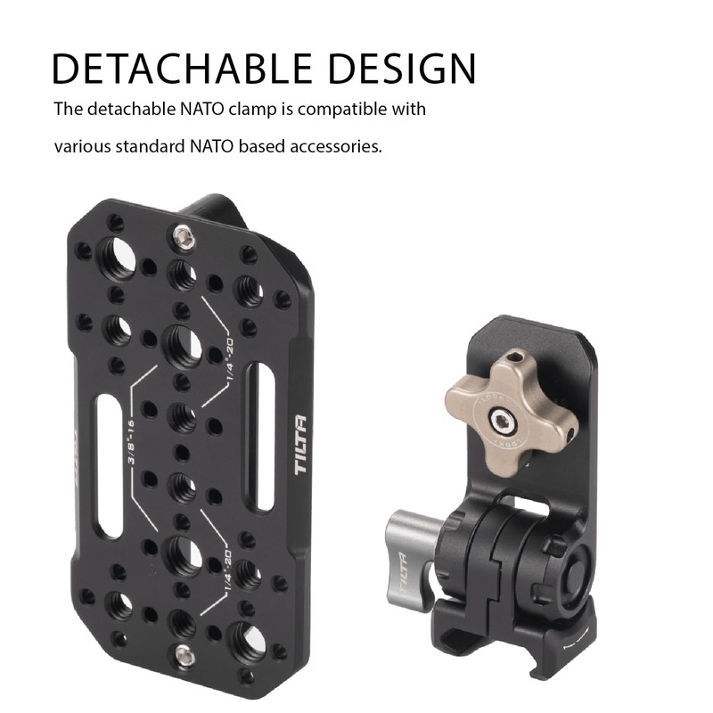 Tilta Adjustable Accessory Mounting Plate for DSLR Cameras, Multifunctional Cheese Plate with Removable Nato Clamp 1/4"-20 and 3/8"-16 Thread Nato Rail - Black TA-AMP-B