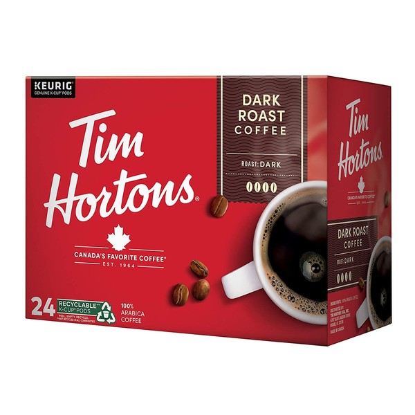 Tim Hortons Dark Roast Coffee, Single-Serve K-Cup Pods Compatible with Keurig Brewers, 24ct K-Cups