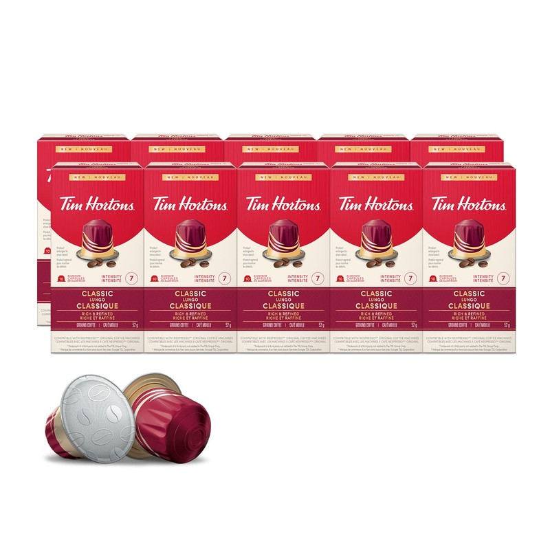 Tim Hortons Classic Lungo Capsules, Nespresso Original Line Compatible Capsules, 100 Count