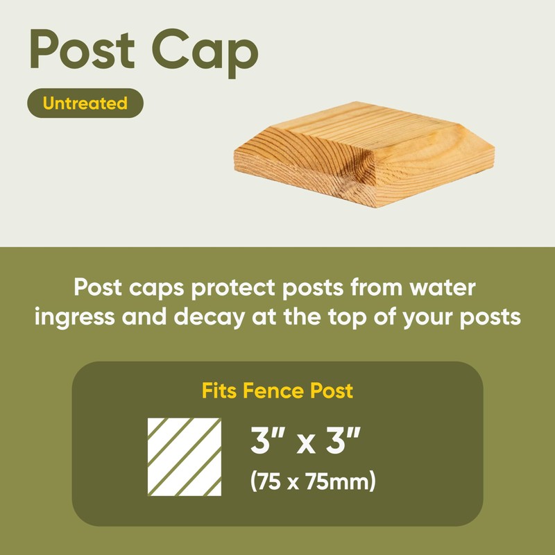 Timber Fence Post Cap | Fits 3x3" (75x75mm) Posts | Untreated | Square Posts | Pack of 5