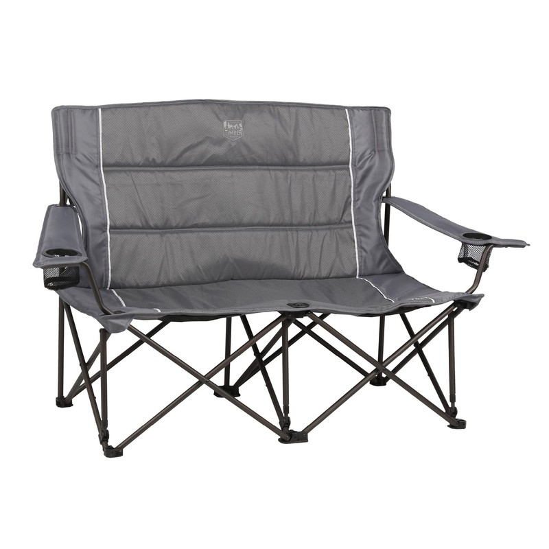 TIMBER RIDGE 2 Person Folding Loveseat Comfortable Double Foldable Camping Chair Folding Lawn chairs for Outside, Grey