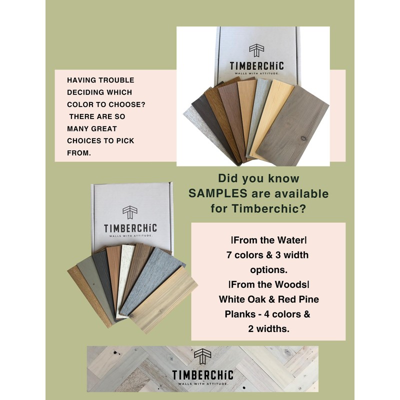 Explore different finishes and textures before committing to a full wall transformation. Order a sample pack and experience the quality of TIMBERCHiC’s peel and stick wood planks for yourself.