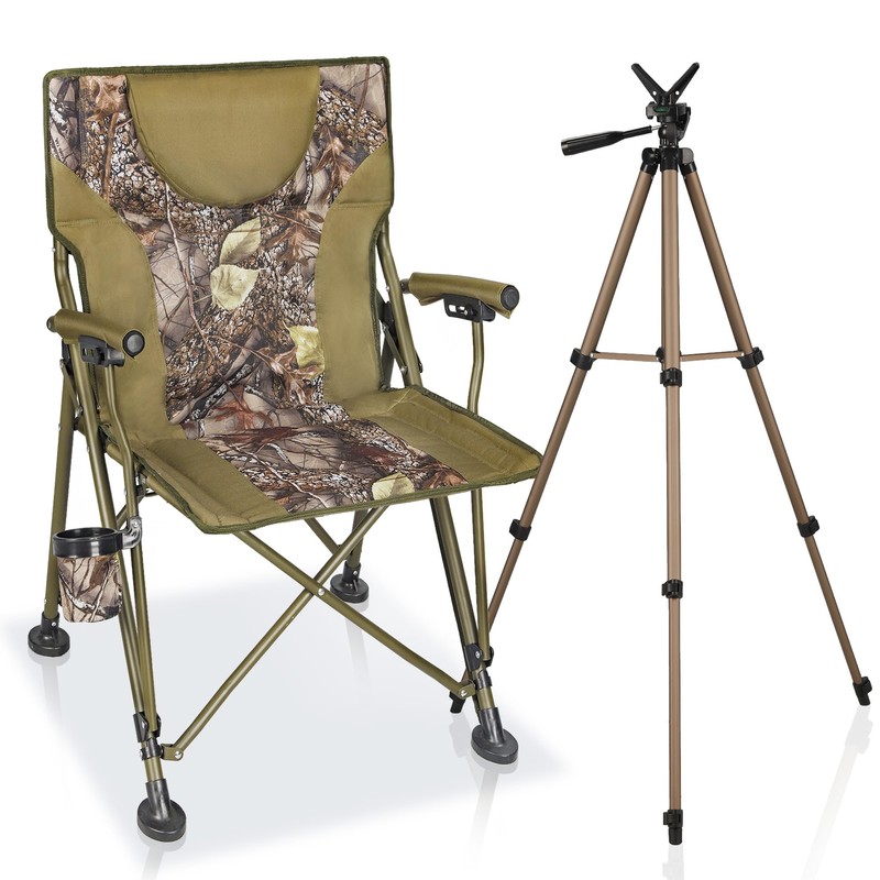 TIMBERHIDE Camo Camping Chair with Hunting Rest,450 LBS Support Hunting Chairs,Folding Padded with Armrests & Headrest,Heavy Duty Portable Camp Chairs for Fishing Picnic Outdoor,Camouflage